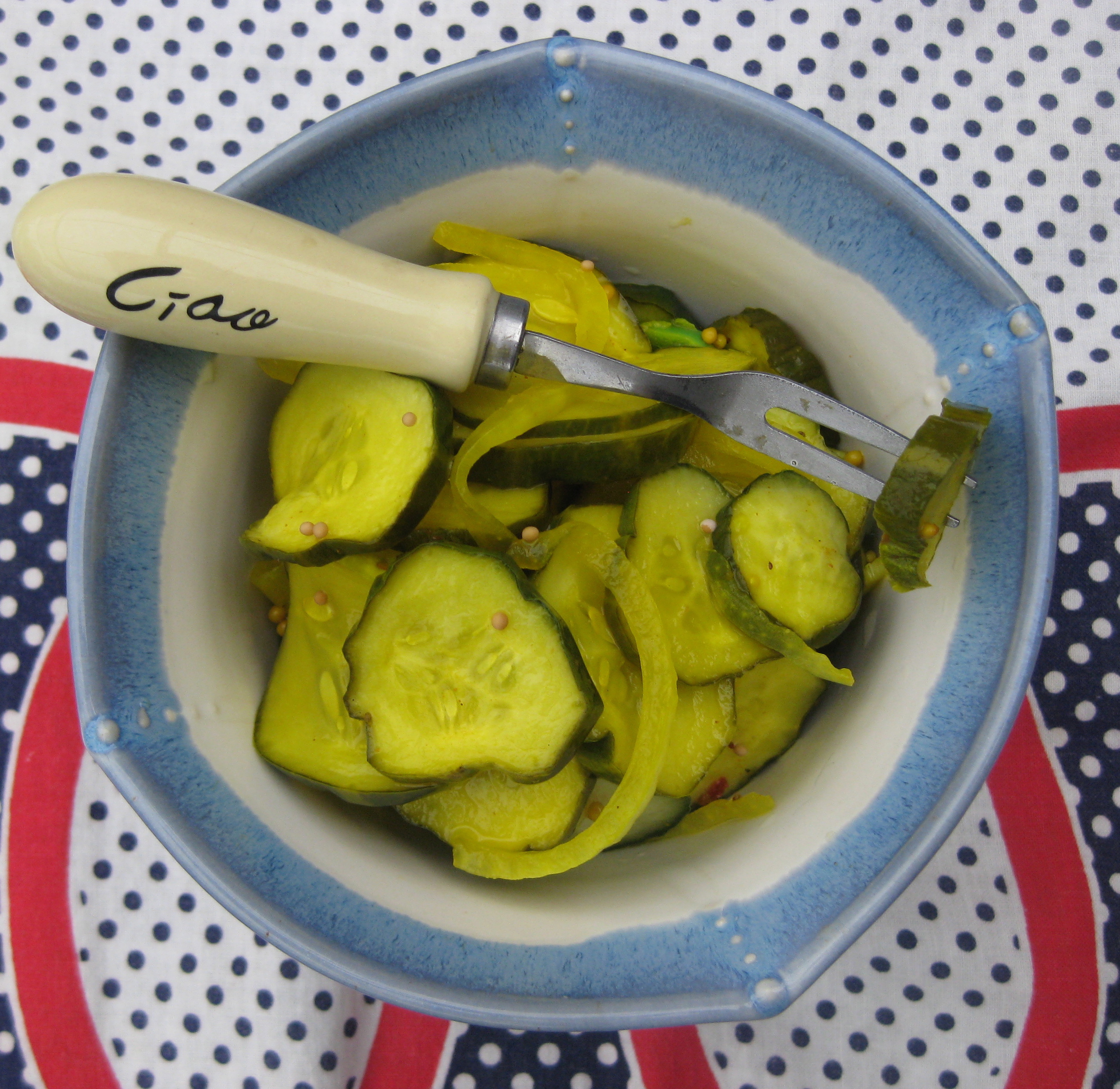 Recently, while visiting my in-laws in Kentucky I was loaded up with cucumbers from their farm. I have been trying to squeeze them into as many recipes as possible to use them up and still I have cucumbers stuffed in the fridge. Good time to play around with pickle recipes! When life (or your mother in-law) hands you cucumbers, make pickles!