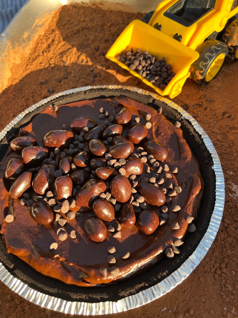 In a food processor, place all ingredients besides pie crust and decorating candies. Blend all ingredients until smooth. Pour the chocolate mixture into the piecrust and place it in the fringe for about 30-40 minutes to set. When ready, have fun decorating with candy!