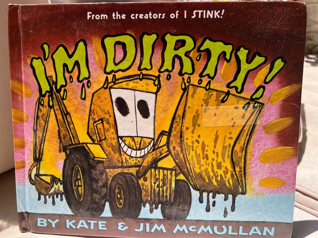 A book that is revving with energy is Kate & Jim McMullan’s, I’m Dirty! This book really makes you want to get outside and play hard. It also has a great lesson for cleaning up! The backhoe loader in the story does a great job at clearing out junk and putting things back in order. Next time there is a mess to be cleaned up, try having a clean up countdown just like the busy truck. And if the references to deserts in the story get you in the mood for something sweet, make this amazing Mud Pie.