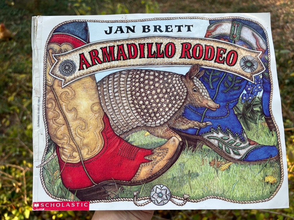 A curious little armadillo named “Bo” tries to make a new friend in the desert when he ends up at the rodeo in Jan Brett’s, Armadillo Rodeo. The little armadillo has quite an adventure riding a horse, tasting a hot chili pepper and even learning some new dance moves! The aromas and flavors of Rodeo Chili are sure to be loved by every little cowboy or cowgirl! For some after dinner entertainment try out your own new dance moves with your own guitar!