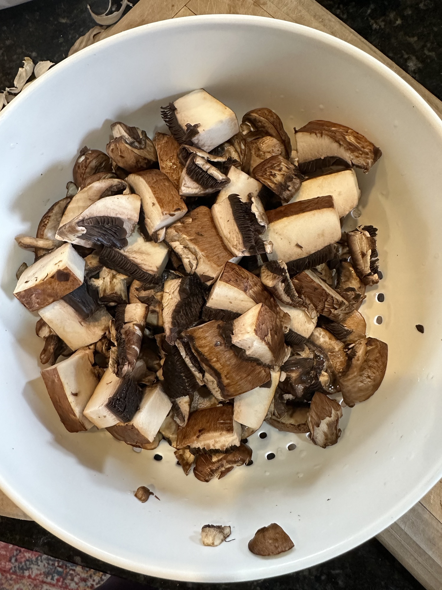 3 cups of mushrooms (I used baby Bellas and one regular portobella)